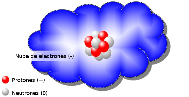 El núcleo del átomo es su parte central. Tiene carga positiva, y en él se concentra casi toda la masa del mismo. Sin embargo, ocupa una fracción muy pequeña del volumen del átomo: su radio es unas diez mil veces más pequeño. El núcleo está formado por protones (carga +) y neutrones (sin carga).