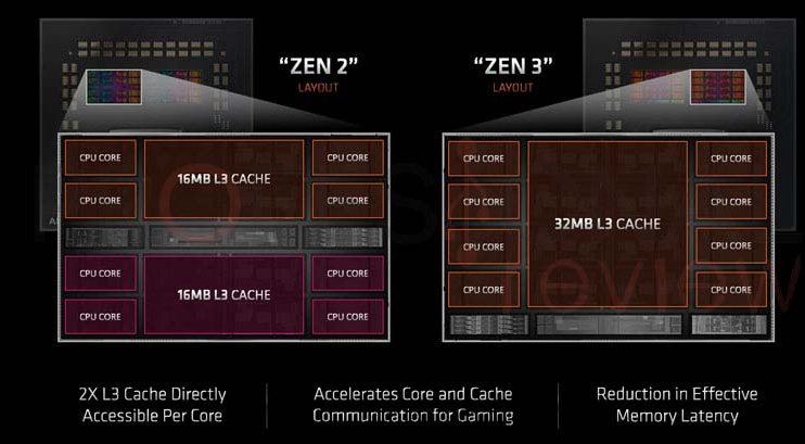 La arquitectura Zen 3 es una transición a un nuevo diseño complejo unificado que incorpora 8 núcleos y 32 MB de caché L3 en un solo grupo de recursos. El chipset