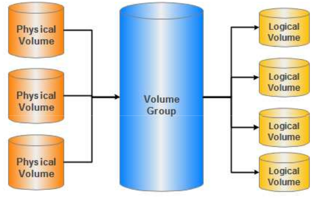 VG (Volume Group): grupo volumen, es el área donde se juntan los PVs y VLs.