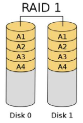 Denominado réplica (mirroring), crea una copia exacta (o espejo) de un conjunto de datos en dos o más discos. Es utilizado para garantizar la integridad de los datos.