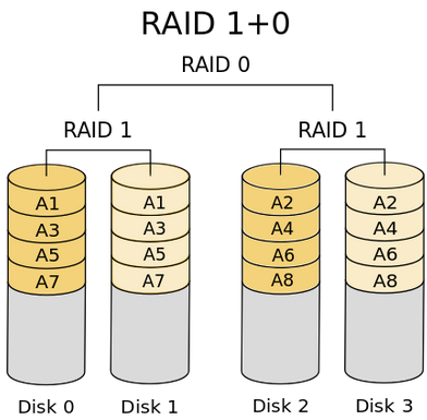 Con la tecnología RAID, los discos unidos pueden utilizarse de maneras diferentes, denominadas niveles RAID