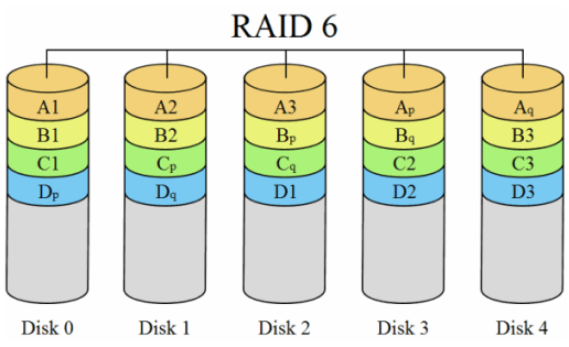 Como resultado de las modificaciones introducidas los Raid 6, toleran el fallo de dos discos (incluso durante la reconstrucción de uno de ellos), sin pérdida de datos.