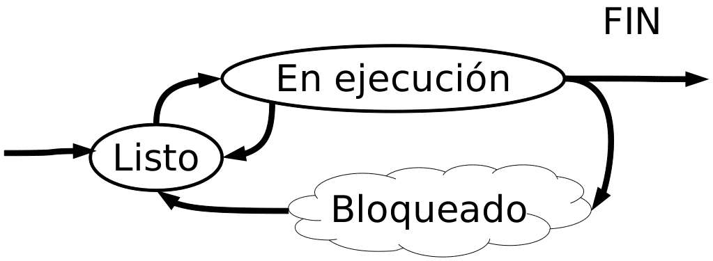 Como podemos ver proceso es un programa que está en ejecución. Los procesos pueden estar en alguno de los siguientes estados: